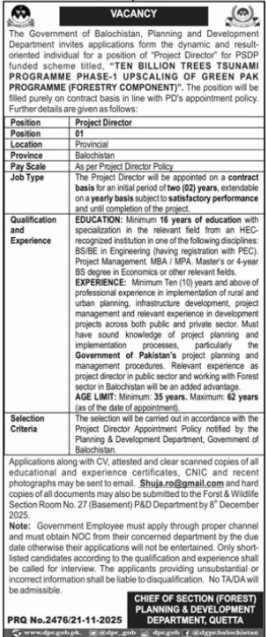 Candidates if you are seeking Planning And Development Jobs In Balochistan, December 2025 if yes. It would be best if you tried to complete read Planning And Development job because you can easily apply for these vacancies Project Director.
