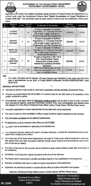 The Punjab Forest Department Jobs In Lahore, December 2025 Advertisement